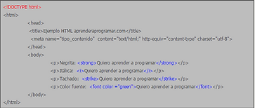 El lenguaje HTML permite aplicar algunos efectos visuales al texto. Escribe o copia este código y guárdalo en un archivo de nombre ejemplo1.html.