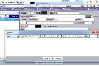 3. Se llaman auxiliares a las constantes, variables, vectores (listas de variables), funciones y algoritmos que el autor o la autora de una escena de Descartes puede definir y utilizar. Los auxiliares de una escena pueden editarse usando el panel de configuración de auxiliares, al que se accede seleccionando "Auxiliares" en la ventana de edición.